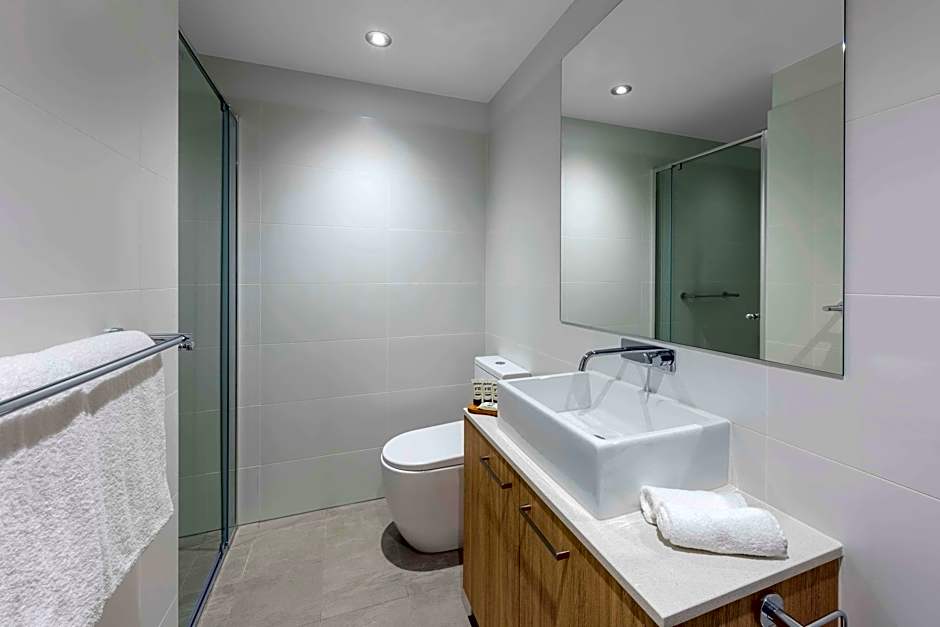 These spacious suites feature an open-plan living and dining room, fully equipped kitchen, laundry, private balcony, separate bedroom and en suite, with the added space of study room.Relax in front of your Smart TV and enjoy unlimited free WiFi during your stay.